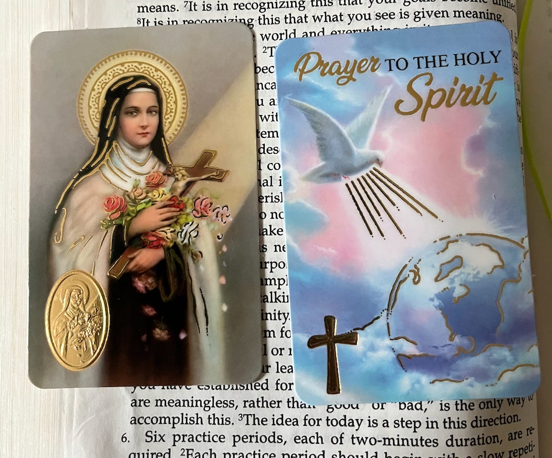 image- St Theresa and Holy Spirit prayer cards