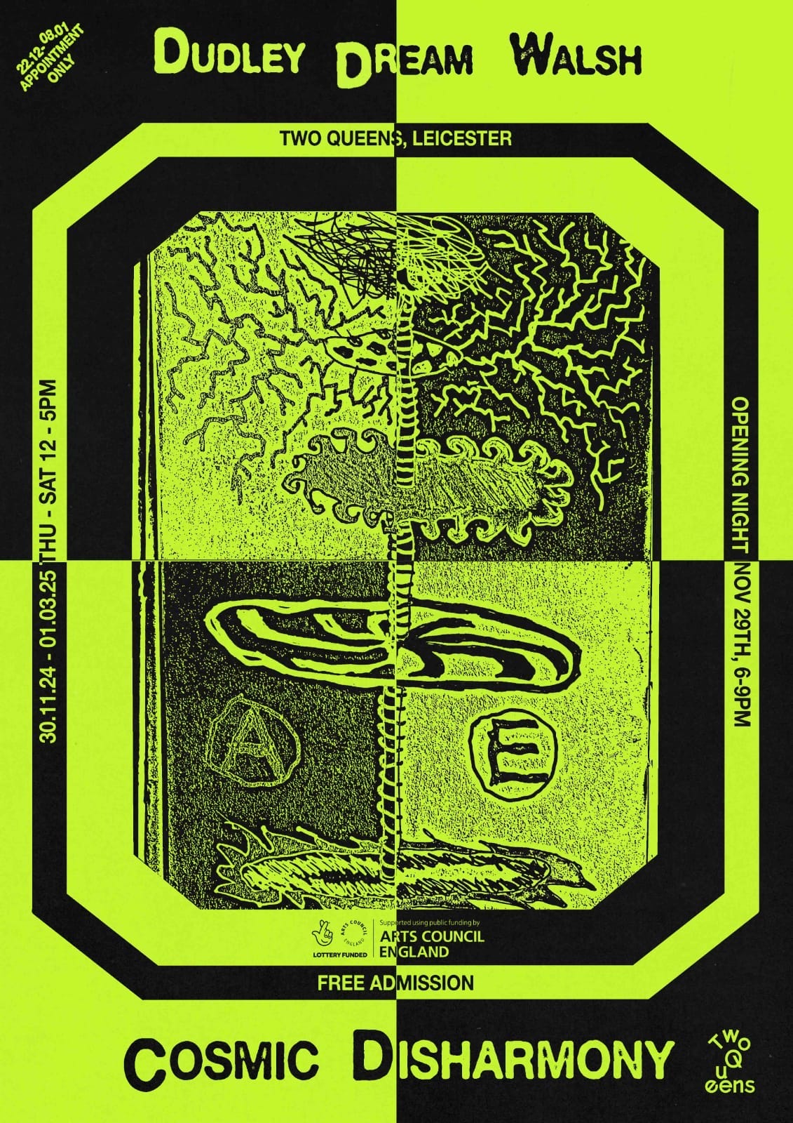 Two Queens is proud to present Dudley Dream Walsh's first UK exhibition of paintings ‘COSMIC DISHARMONY’. The show is a culmination of experiments made whilst a resident at the semi-mythical DIY artist residency, The Field, Derbyshire.
